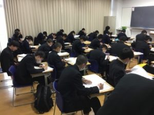 高1は1月14日、進研模試1月に取り組みました。全員国数英の3科目での受験となりました。入学してから積んできた学力を冬休みでどれだけ強化することができたかが問われる今回の模試。学年から冬休み中に配信されたClassi学習動画やスタディサプリの模試対策(確認テスト→動画視聴)など、この模試に特化した課題も配信されました。本日の模試では多くの生徒がiPadや教科書等で知識の整頓を行い、試験本番に臨みました。