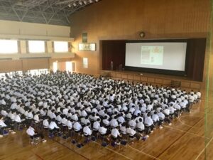 2・3年生の宗教講話会は、大正大学准教授・仏教学博士の佐々木大樹先生をお招きし「日本人と仏教」という題目で行いました。仏教が日常や年中行事でどのように関わっているのか、日本語で使用する文字と仏教の関りについてなど、身近な物事について触れられました。いかに仏教が日本の生活に溶け込んでいるかを実感することもできました。