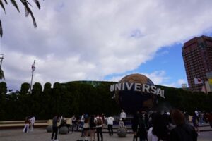 新阪急ホテルを後にし、一行はユニバーサルスタジオジャパンへと向かいました。しかし、USJ周辺の渋滞に巻き込まれ、やや時間が押してのスタートとなりました。