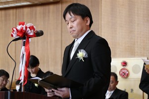 式の後は学年職員(代表して学年主任)による保護者へのあいさつです。いただいた大きな拍手は各職員にとって忘れられないものとなりました。