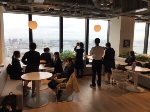その後、ソフトバンクの社員である石井 ゆめみ さんに現在の取り組みについてお話をいただき、その行動力に生徒たちだけでなく引率教員も大いに刺激を受けました。また並行してオフィス内を案内していただきました。社員の皆さんの多様な働き方に生徒たちも驚いていました。