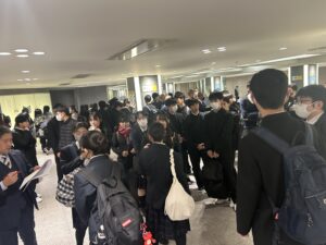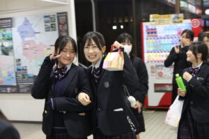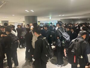 集合場所である丸の内地下南口の改札外、「動輪の広場」団体待ち合わせ場所に到着しました。これからついに待ちに待った修学旅行が始まります。