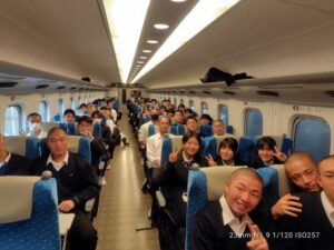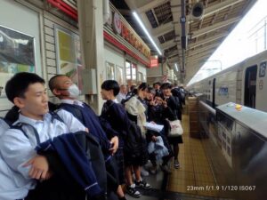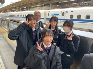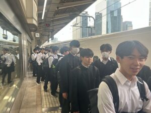 ホームへ移動。クラスごと並んで改札を通り、新幹線のホームに向かいます。