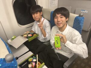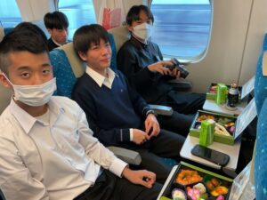 予定通り東京駅を出発し、新幹線の中でお弁当を食べます。