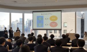 本日、日比谷三井カンファレンスにて行われた【起業家教育プログラム 成果報告会】に高校1年生の3名で参加をしました。この研修会には、全国から集まった18の高校が参加します。