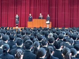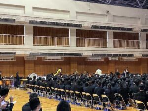 2026.2.28、講堂にて予餞会と卒業式予行が行われました(中学生は家庭学習日です)。
