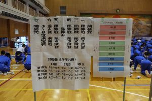 各学年クラス対抗団体戦を制したのは、1年…B組、2年…B組、3年…C組です。