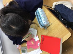 年賀状の書き方を学ぶために、書道の時間で宛名や住所の正しい書き方について学びました。