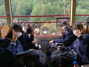 その後は竹林の小径や、源氏物語にも登場する縁結びの神様で有名な野宮神社を散策し、嵯峨野トロッコ列車に乗りました。