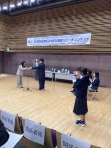10月25日(土)に成田空港周辺中学生英語スピーチコンテストが行われました。本校からは中2暗唱の部に生徒1名が出場し、How much sleep do you really need? という題名のスピーチを披露しました。気になる結果ですが…何と最優秀賞をいただくことができました!! 当日は出場者の皆さんの熱い発表を見ることができ、本人にとっても、引率教員にとっても、大いに刺激になりました。