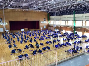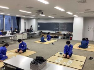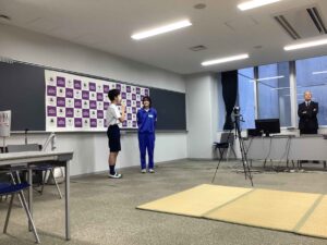 本日は、個人戦の決勝戦と団体戦が行われました。個人戦は各クラスの代表者が出場し、小倉百人一首の付属中最強を決める戦いです!大会議室に畳が運び込まれ、超ハイレベルな戦いの様子が各教室に配信されました!畳の上の格闘技とも呼ばれる競技かるたのすさまじさが画面越しにも伝わってきました!
