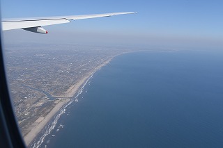 いつの間にか日付変更線を超え、29日から30日に変わりました。九十九里浜が見えてくると日本に帰ってきたと実感します。空港に飛行機が降りると満開の桜が見えて、無事帰ってきた喜びがわいてきました。