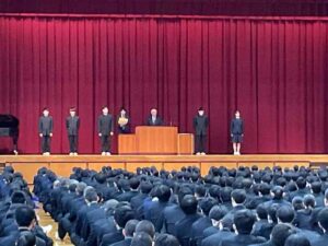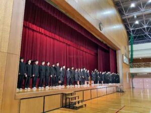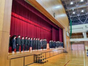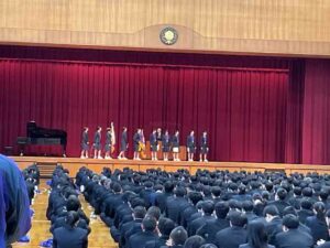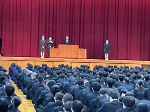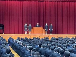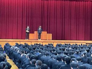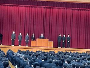 学校長式辞、生徒指導部長訓話の後に中高に分かれて表彰伝達を行いました。