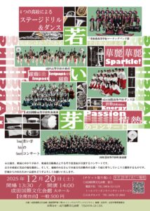 12/20(土)に成田国際文化会館にて開催される「若い芽のコンサート」にて成田高校・成田国際高校・千葉敬愛高校・四街道高校の4校がステージマーチングとダンスを披露いたします。