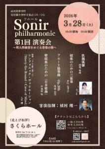 音楽部で活動した歴代の卒業生がオーケストラ団体【ソニール・フィルハーモニー】を結成し、第 1 回演奏会を下記のとおり開催する運びとなりました。