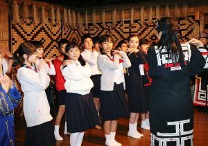 1日目は、アイヌ民族博物館を訪問しました。伝統舞踊や楽器の演奏を聞いたり、「ムックリ」という楽器の制作活動に取り組んだりしました。広い園内には、アイヌ犬やクマも飼育されていて、まじかに観察することができました。夜は、洞爺湖で行われる湖上花火大会を鑑賞しました。