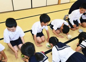 1年生は初めての茶道体験でしたが、小さな手で大切に茶碗を扱いながら、熱心に取り組むことができました。