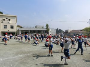 4月22日(月)から、低学年は1校時、高学年は5校時、本校グラウンドにて、運動会練習が始まりました。
