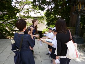 6月25日(火)3・4校時、26日(水)5・6校時、それぞれ4・6年生が成田山新勝寺境内で英語科の校外学習をしました。