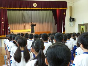 6月29日(土)かがやきタイム(8:15~8:35)に、体育館にて音楽集会を行いました。