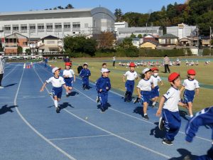 今回は、新型コロナウイルス感染症拡大を防ぐ為、残念ながら保護者の方の参観はなく、子どもたちと教員のみで行いました。でも、子どもたちは、青空の下、広いグラウンドでのびのびと運動できました。