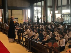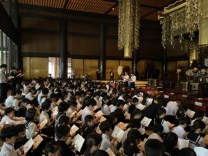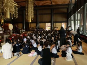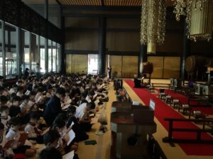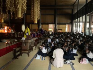 大護摩修行のあとは、礼拝です。6年生が経頭を務めます。