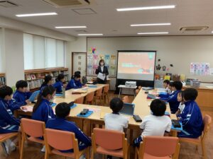 11月22日(水)5・6校時、高学年総合の時間に、「ハートフル・チャレンジ」のメンバーは、前回施設見学させていただいた「成田デジタルキャリア」の施設長の先生に講話をいただき、質問をさせていただきました。