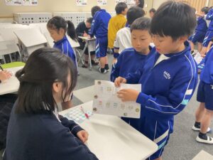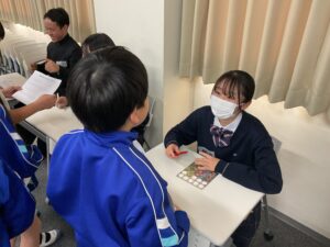 12月15日(月)に、4年生は高校3年生と英語を使って活動をしました。